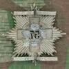 Das Emblem zeigt einen Schild in der Form eines 8-zackigen Sterns mit Kreuz und Eichenkranz und Nummerring.