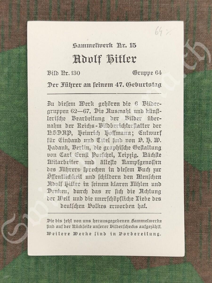 Zigarettenbild, Sammelwerk Nr. 15, Gruppe 64, Bild Nr. 130, Der Führer an Seinem 47. Geburtstag